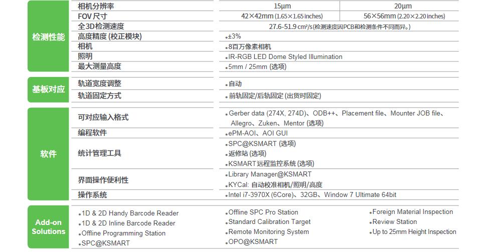KOH YOUNG TECHNOLOGY Zenith UHS 高速全3D AOI,帶來 SMT 工藝管理的革命 行業(yè)領(lǐng)先的全三維測量檢測設(shè)備技術(shù)解決方案 - 業(yè)界唯一既符合 IPC-610 標(biāo)準(zhǔn)又具備直觀編程的檢測標(biāo)準(zhǔn)設(shè)置 - 通過基于測量的數(shù)據(jù)執(zhí)行缺陷診斷,并消除可能出現(xiàn)錯(cuò)誤的原因 - 完美的三維焊點(diǎn)檢測 基于全三維數(shù)據(jù)的工藝優(yōu)化解決方案:實(shí)現(xiàn)工業(yè) 4.0 /智能工廠 適用于各種生產(chǎn)環(huán)境的最佳規(guī)格典范